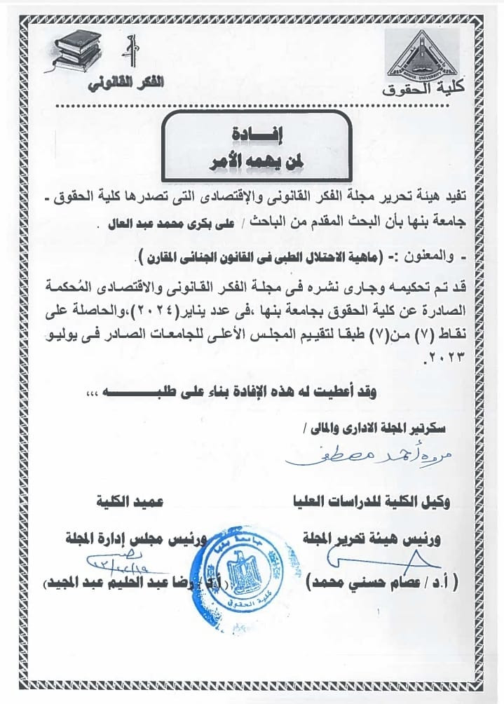 مؤلف كتاب "الاحتيال الطبي في القانون الجنائي المقارن".